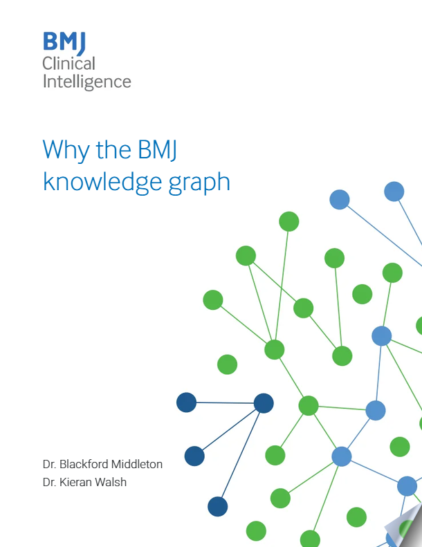 Our state-of-the-art white paper – ‘Why the BMJ Knowledge Graph’ by Dr. Blackford Middleton, Digital Knowledge Products Consultant, and Dr. Kieran Walsh, Clinical Director, BMJ – outlines the challenges faced by modern healthcare, including delayed translation of new knowledge into clinical practice, unwarranted variability in healthcare delivery at the patient and population level, and lack of optimization of cost, quality, and value.